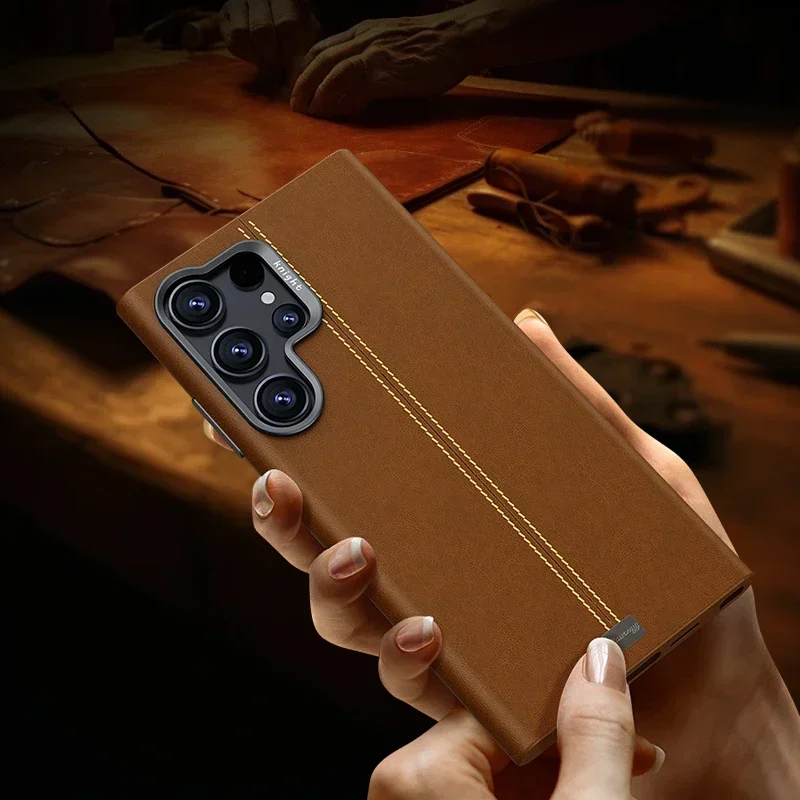 Rich retro charm meets premium leather: this solid-color Samsung case features a smooth matte, fingerprint-resistant finish, wrapping your device in timeless style and everyday practicality.