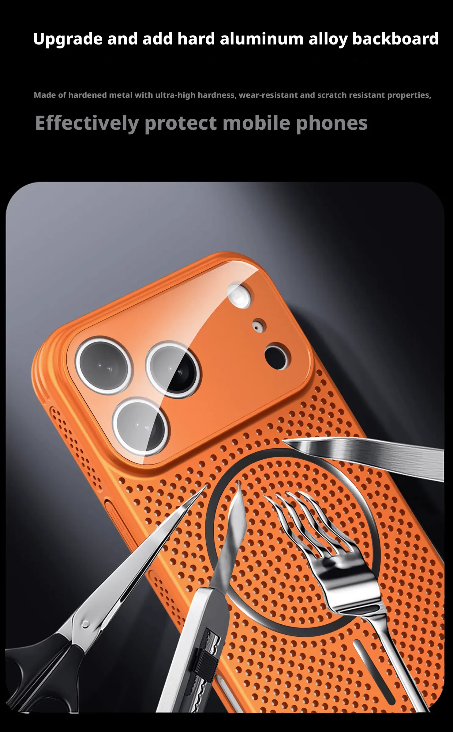Crafted with a hardened aluminum alloy back, delivering a sleek metallic texture while enhancing durability.