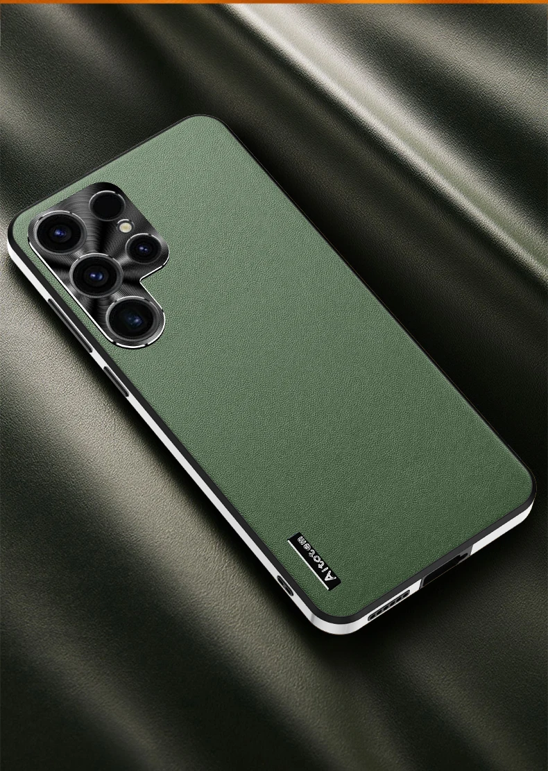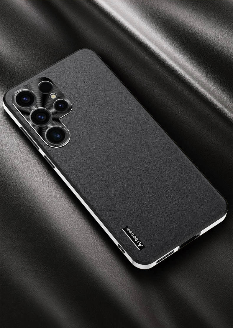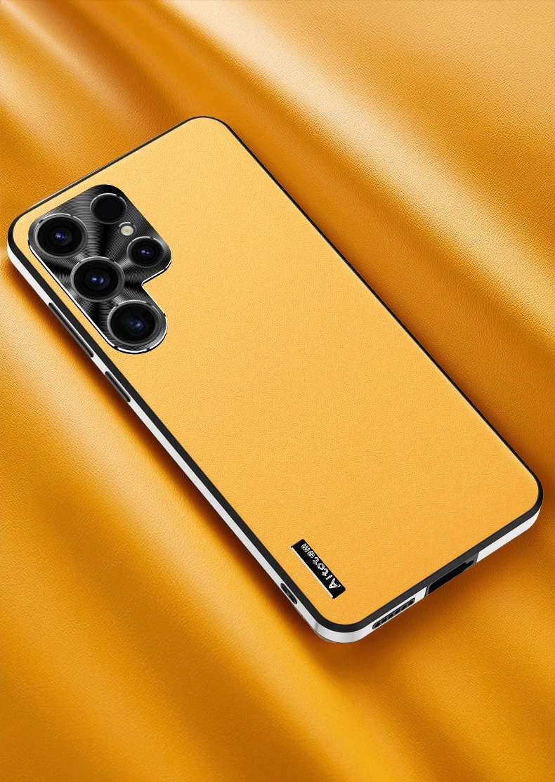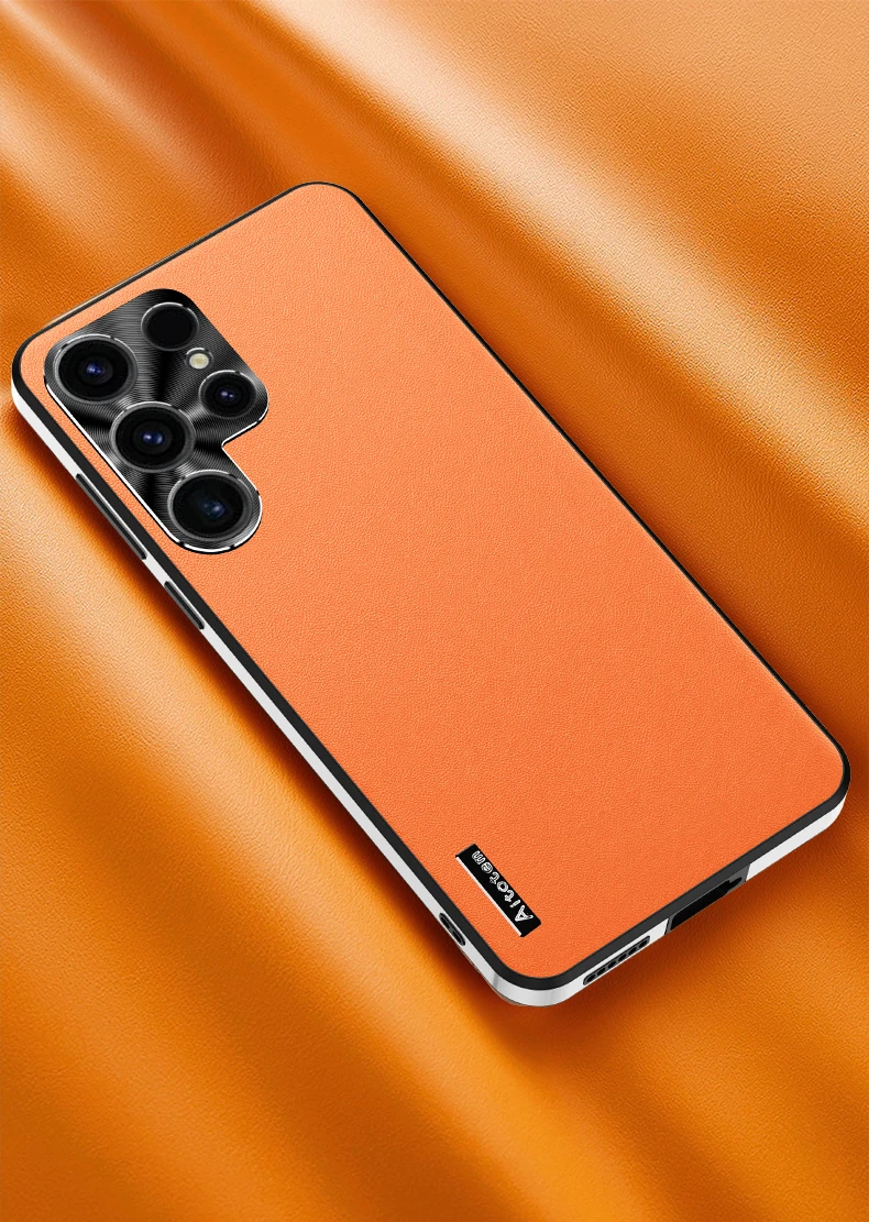 For Samsung S24 S21 S22 S3 Ultra Frosted Plain Leather Phone Case With Lens Protect Frame TPU Border Shockproof S24 ULTRA Cover