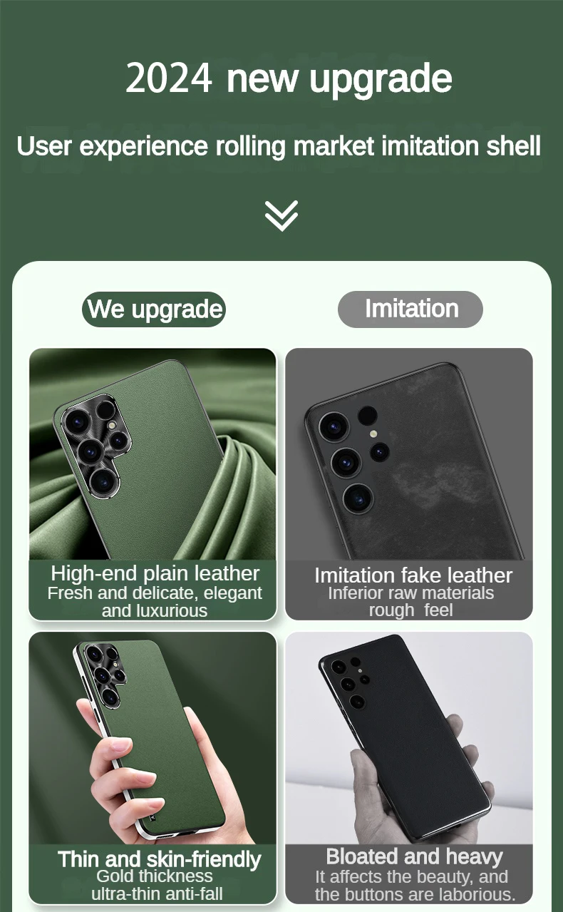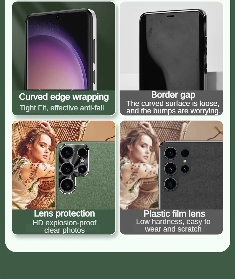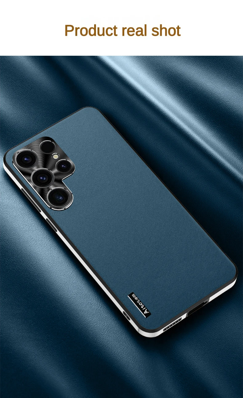 For Samsung S24 S21 S22 S3 Ultra Frosted Plain Leather Phone Case With Lens Protect Frame TPU Border Shockproof S24 ULTRA Cover